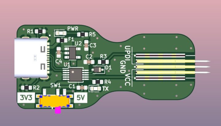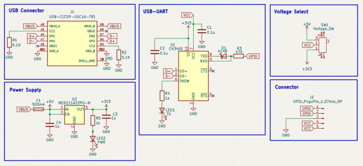 前回製作したUPDIプログラマから回路構成は流用しています。