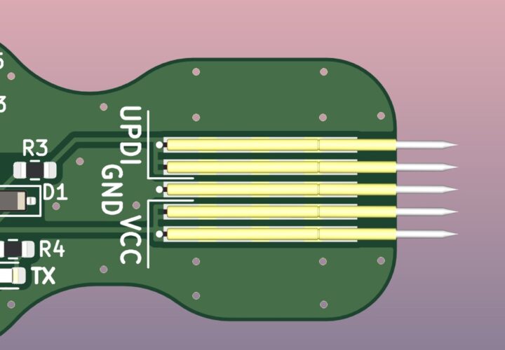 そしてポゴピンの基板実装はやったことがなかったので、そのテストも兼ねてポゴピンUPDIプログラマを作ってみることにしました。