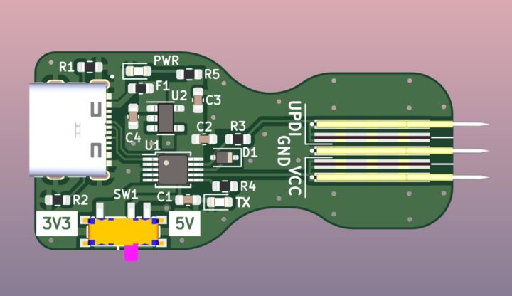 ポゴピンの実装テストも兼ねて普段よく使うUPDIプログラマをポゴピン仕様で作ってみました。