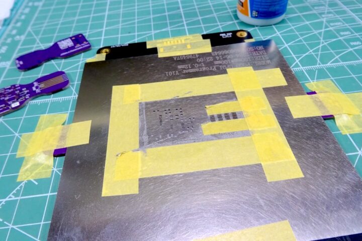 ステンシルを発注される場合は、基板サイズが40mm×19mmと小さいので、ステンシルサイズを100mm角(50mmくらいでもいいかもしれません)くらいに指定しておくと作業しやすいと思います。