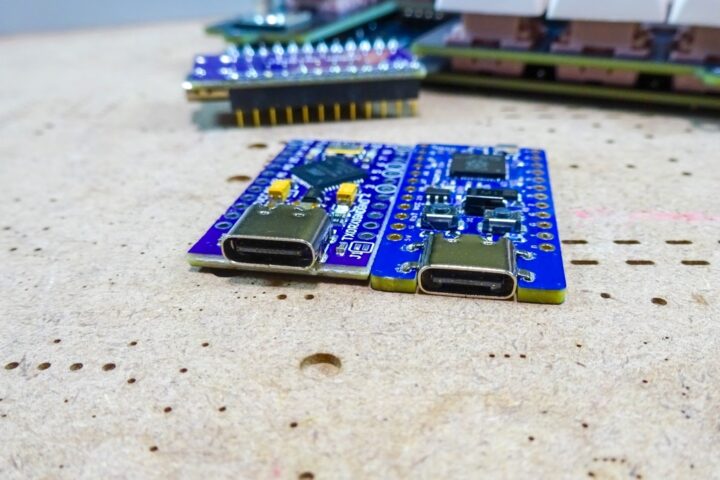 USB機能が付いた小型ボードなので自作キーボードでもよく使われているようですが、フラッシュ容量が32kB(内ブートローダーが2kBほど占有)と少ないため、例えばQMK/Vialといったキーマップ情報をマイコンボード内に格納するファームウェアを使う場合でフラッシュ容量がオーバーしてしまい、機能をカットするなどしないとコンパイルが通らないといったことが起こりがちです。