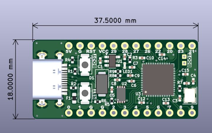手元に電子工作用途で使っていたType-C端子になった互換Pro Microが10個ほどあったのでボードサイズを計測してみると、ほぼ36mm×18mmで作られたものが多いようでした。(製品によってはあえて小型に作られたものもあります)