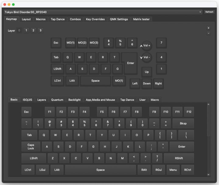 Pro Microを使った場合だとタップ機能を無効にするなどしてなんとかQMK/Vialファームウェアのコンパイルが出来たDisorder30を使いテストしてみました。