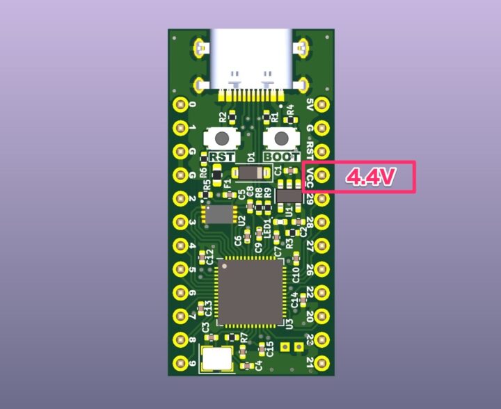 より確実にするため、ボードのVCCの電圧レベルは4.4Vになるように考えています。