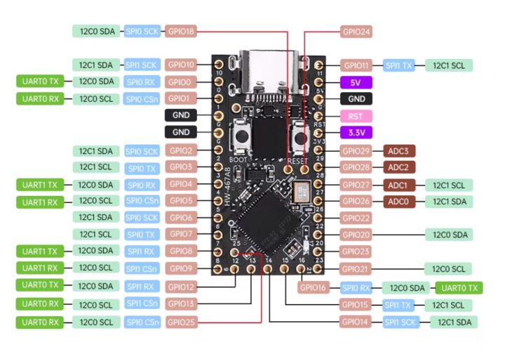 電源やGND、RESET端子以外のGPIOピンは、ADCやシリアル等で使えるピンなどの互換性を考慮してこのようなGPIOの配置になりました。