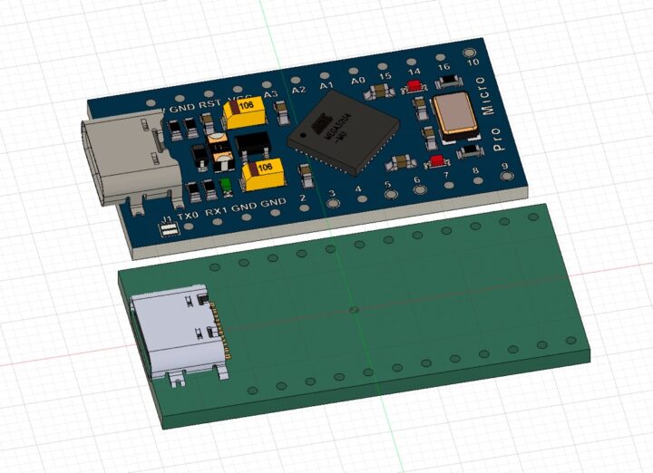 市販されているUSB端子がType-Cになった互換Pro Microボードの多くは、本家SparkFunのmicroUSBタイプのものより長手方向に数ミリほど若干ボードサイズが大きくなっています。