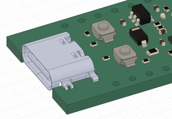 これは少し面倒なので、逆挿しで使う場合でもUSB端子が基板と接触しないようにするためミッドマウントタイプというのかな?