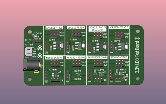 今後このボードを使い実際にRP2040まわりのテスト回路を組む際は電圧レギュレータ(LDO)は別のものを使いたい場合も出てくると思います。