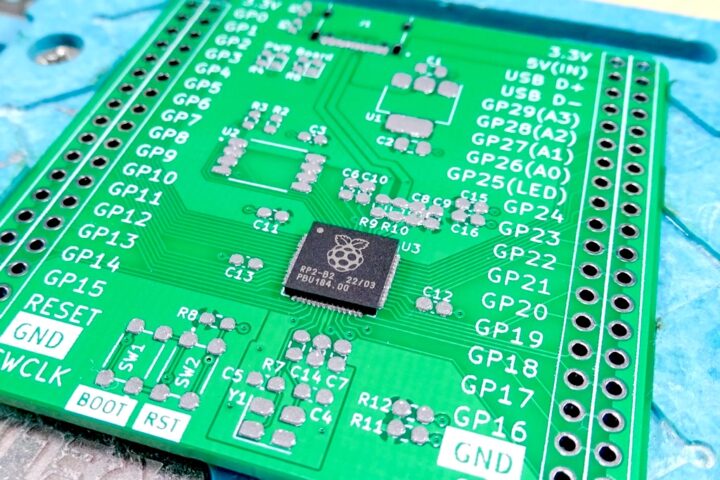 RP2040の実装は今回始めてだったのですが、このような小さなチップの実装はリフローという手段が非常に有効的です。