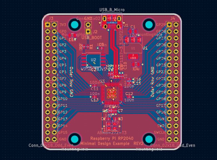 Raspberry Pi公式サイト『Raspberry Pi Datasheets』にはRP2040を使ったサンプル基板がいくつか公開されており、回路図やKiCadの基板設計データなどを見ることが出来ます。