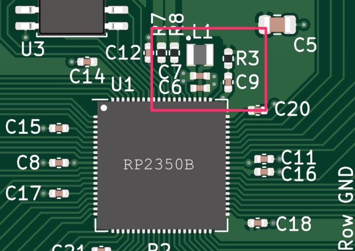 RP2040の100mAリニアレギュレータからRP235xでは200mAスイッチングレギュレータに変更されパフォーマンスは上がったようですが、外部接続で必要となるパーツが増え、公式ドキュメントではこれらパーツの定数やレイアウトに関しても詳細に記述されています。