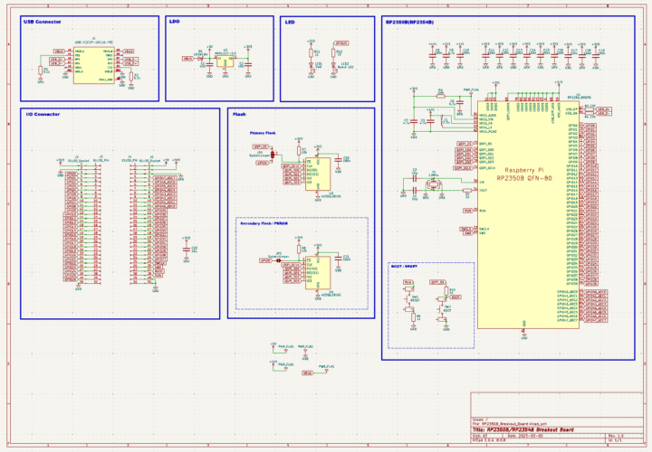 Raspberry Piのエンジニアさんが検証して設計されたものなので、RP2350チップまわりで使用されているパーツの接続や定数などは基本的にこれに従う形になるかと思います。