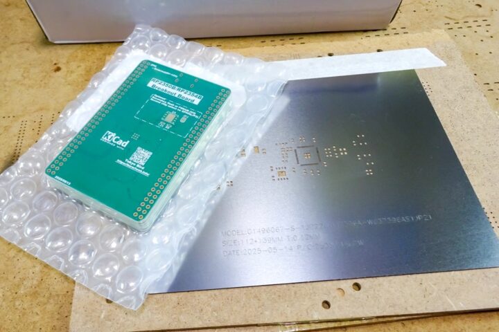 そのため、はんだ作業にある程度慣れた方なら手はんだでの実装も十分可能だと思いますが、今回QFN-80のRP2350Bを使うのが初めてだったのでメタルマスク(ステンシル)も一緒に発注しました。