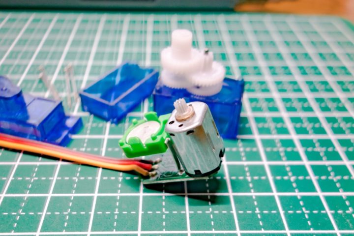 そんな事で使用用途が少し限定されるためあまり使うことがなかった360°回転タイプのサーボなんですが、180°サーボを少し改造してあげると360°サーボとして作り変えることが出来るのでやってみました。