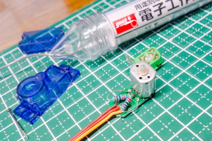 あとはマスキングテープやシュリンクチューブなどで制御基板と短絡しないようにして完了です。(一応切り取ったポテンショメーターもギアがグラつきそうなので元の位置に戻しておきました)