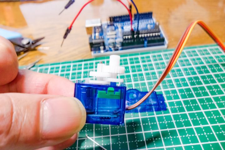 ホビーユースでよく目にするSG90という180°回転タイプのサーボモーターですが、簡単に連続回転サーボ(ローテーションサーボ)に作り変えることが出来るのでやってみました。