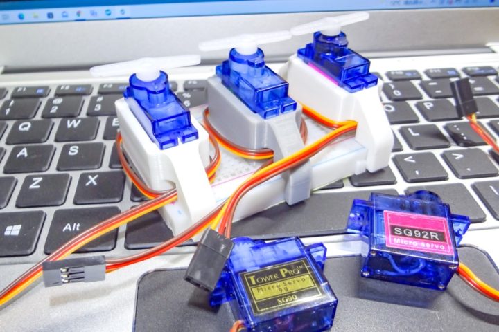 これだけの数のサーボモーターを使うことはあまりないかと思いますが、電子工作をやられている方ならブレッドボードを使うことは多いと思うので便利に使える場面があるかと思います。