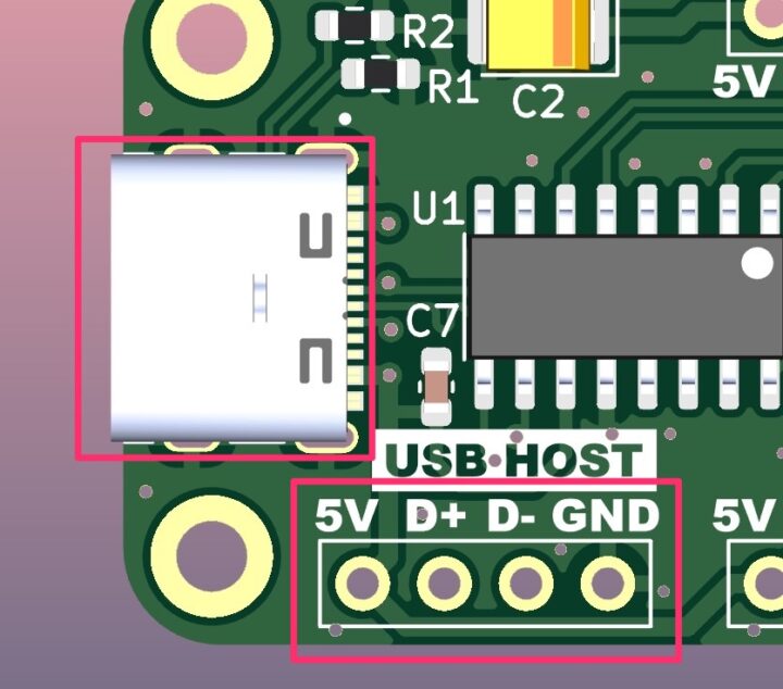 ホスト側はピンヘッダーに加えType-C端子も取り付けています。