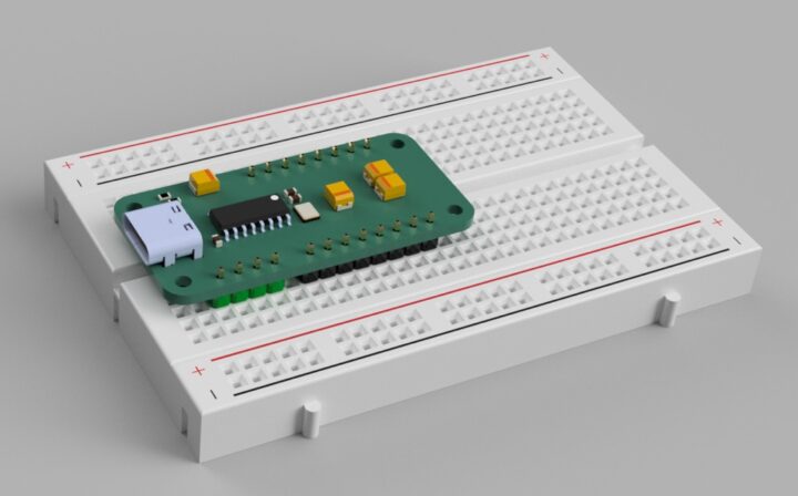 ブレッドボードで使う際に一般的によく使われる片側5列タイプのもので両サイド2ピッチ分接続スペースが取れるボードサイズにしています。