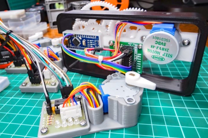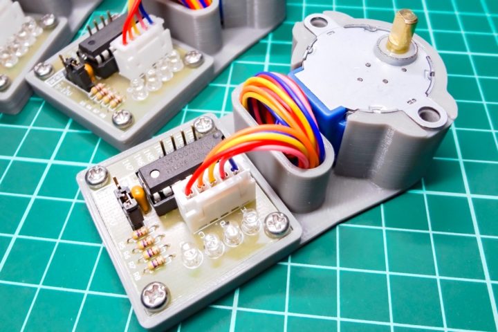 以前ブログでご紹介したことがある3Dプリントパーツで作った歯車時計にもこのステッピングモーターを使いました。