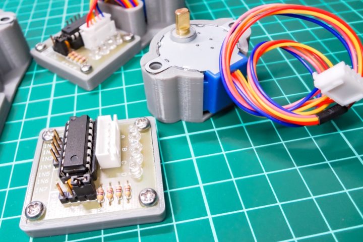 小型のステッピングモーターなのでこのような製作物に組み込む場合は非常に使いやすいモーターとなります。