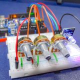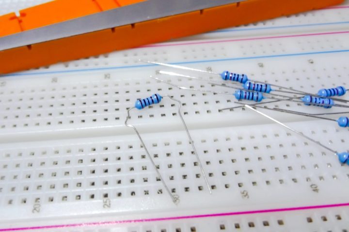 ブレッドボードに挿し込むと綺麗に4穴分の間隔で配置することが出来ます。