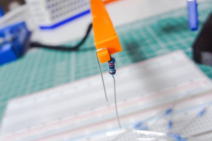 試しに抵抗の足を10mmの間隔で折り曲げてみます。