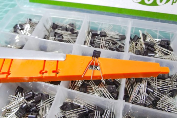 3端子トランジスタ(TO-92タイプ)の足を一定の高さで均一に広げることも出来ます。