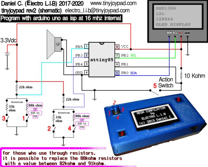 上記Tiny Joypad公式サイトには回路構成が公開されています。