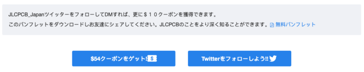 JLCPCBでの基板発注が初めてという方は、こちらのページから初回クーポンをいくつかもらえるのでさらにお安く作ることが出来ます!