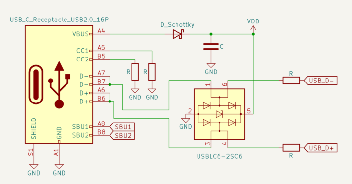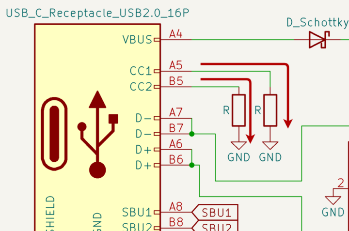 さらに、VBUSやGNDラインにはプルアップ抵抗やプルダウン抵抗が入っていることが多いと思います。