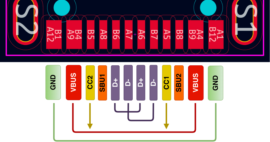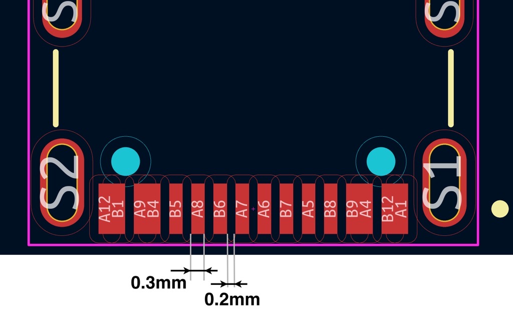 オス側の表面・裏面のVBUSとGNDが1つのパッドになっているので、実質12ピンのフットプリントのものが使われることが多いと思います。