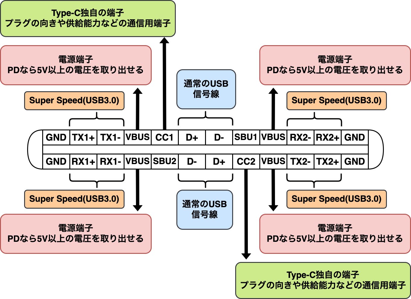 Type-C(USB-C)コネクタのピン配列