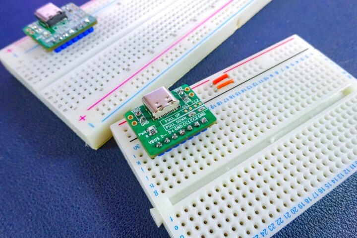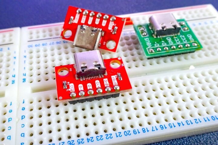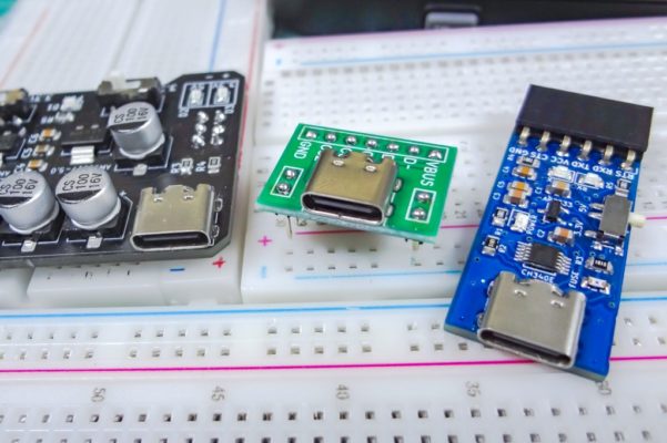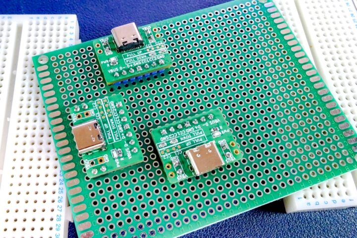 ピッチ変換基板はブレッドボードで使うことがほとんどで、特にType-Cコネクタといった電源も扱うボードでは直接ブレッドボードの電源レーンに電源供給ができるタイプのものがあると便利なことから自作してみました。
