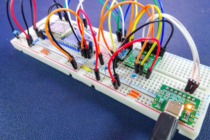 ブレッドボードの電源レーンに直接差し込んで使うことも出来るように上部に電源端子(VBUS/GND)を設置しました。