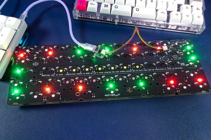 『waffling60』は4pplet氏設計のオープンソースで提供される60%キーボード用PCBで、一般的なANSIおよびISOレイアウト、分割スペースをサポートするマルチレイアウトPCBとなっています。