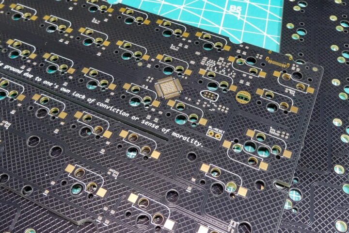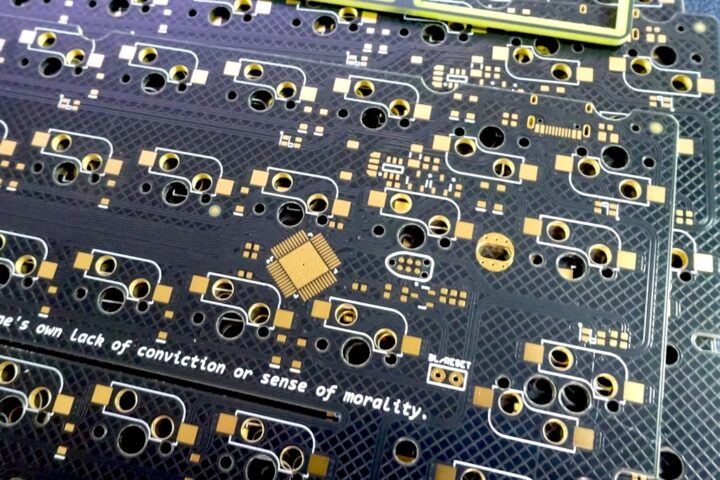 金メッキ加工された綺麗な基板に仕上がるので、自作キーボード用基板としてはインパクトがありいいかもしれません。