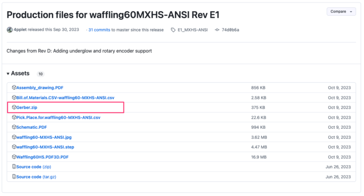 基板やキープレートデータなどの製造用ファイルは、GitHubのリリースページからダウンロード出来ます。