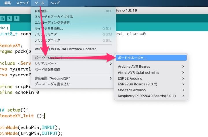 次に[ツール]→[ボード]→[ボードマネージャ]へと進みます。