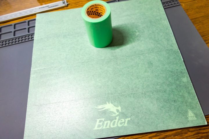 幅が少し大きいため綺麗に貼るのがなかなか難しいですが、Ender3 V2のビルドプレートを2回でほぼ埋めることが出来ます。