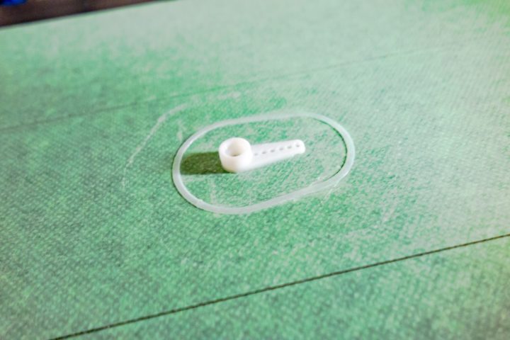 自分でモデリングしたものではこちらのパーツの造形が今まで1番難しく、ラフトやブリムを付けないと約0.8mmほどの穴の定着がなかなか上手くいかなかったのですが、マスキングテープ使うと難なく出来ちゃいました!