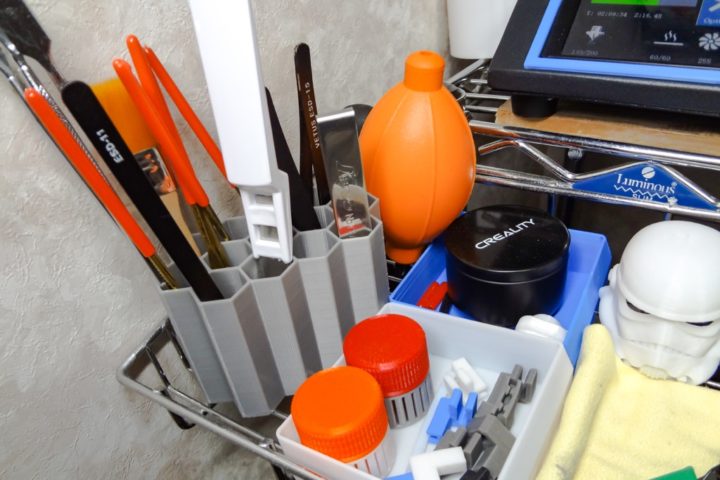 そしてこれらアイテムを収納するツールスタンドを3Dプリンタまわりに置いておけば便利に使えます。