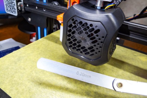 オートレベリングを導入するとテストパターン等を出力させながらZオフセットを調整しノズル高を微調整するといったこともできるのですが、手動での調整ではベット上の端を何度もレベリングナットを回し調整する必要があるのでシックネスゲージを持っていると便利になるかと思います。