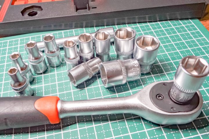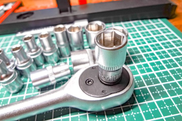 そして最後に1つ上げるとしたらラチェットレンチ(ソケットレンチ)は1台持っていると役に立ちます。