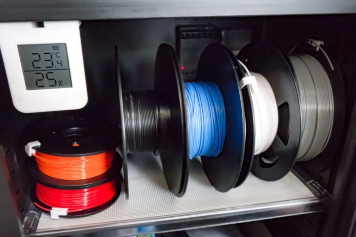 そんな事からフィラメントの保管にはドライボックスを使いシリカゲルで湿度を下げるなどの工夫をみなさんされているかと思います。