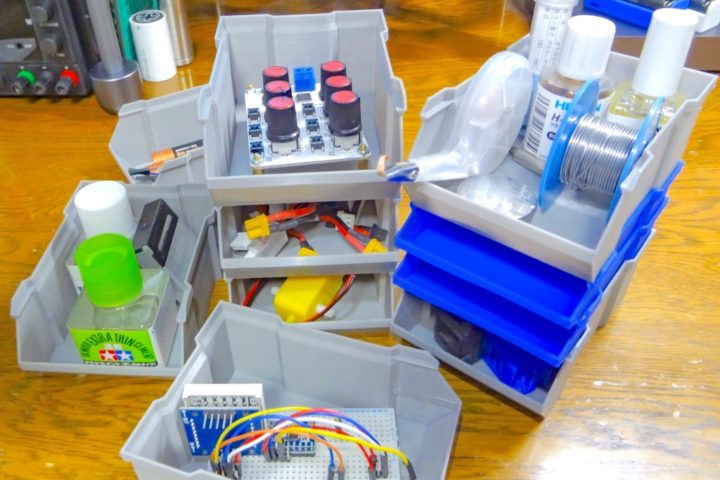 趣味部屋の作業デスクが最近手狭になってきたのでミニラックをデスクに設置したのですが、このスタックボックスが非常に便利に使えるため久しぶりにリピートしていくつか作っていました。