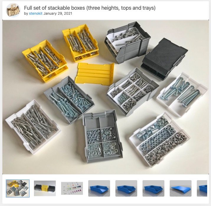 参考 Stackable Box V4 (Half Height)Thingiverse人気モデルなので他にも多くのリミックス作品が投稿されています。