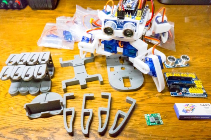 3Dプリンタをお持ちなら安価で作れるArduino制御の4足歩行ロボットとなっています。