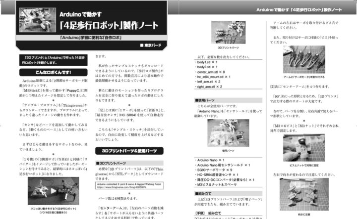 そんな事で、はじめて3Dプリンタを使って製作したこの4足歩行ロボットをI/O工学社の『I/O 2021年9月号』にご紹介して頂きました。
