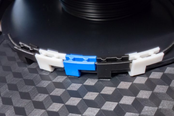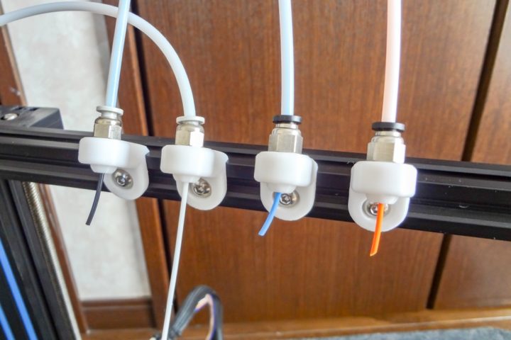 複数取り付けておくと、使いたいフィラメントを延ばしエクストルーダーまで引っ張るだけなので大変便利となります。